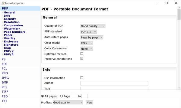Stále robustnější nástroj ke snadnému vytváření kvalitních dokumentů pdf. Grafiky, fontů, velikost výstupu na web. Je vhodný i pro síťové využití mnoha uživateli (stačí jedna instalace na serveru a sdílená tiskárna pdf je přístupná všem), umožňuje nastavení různých parametrů jako např.: Grafiky, fontů, velikost výstupu na web.